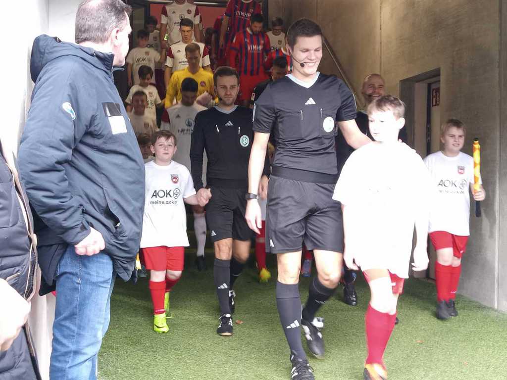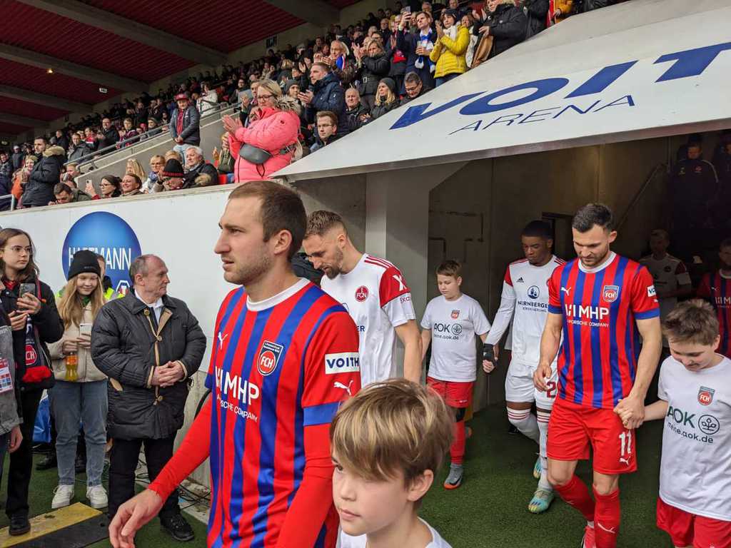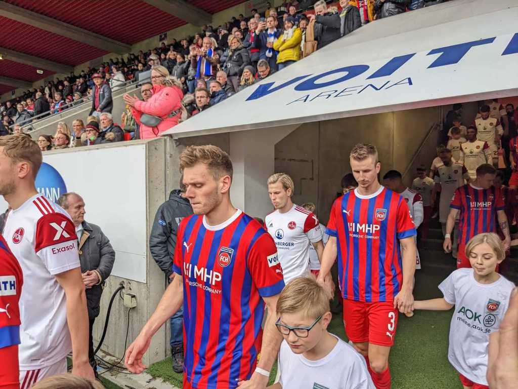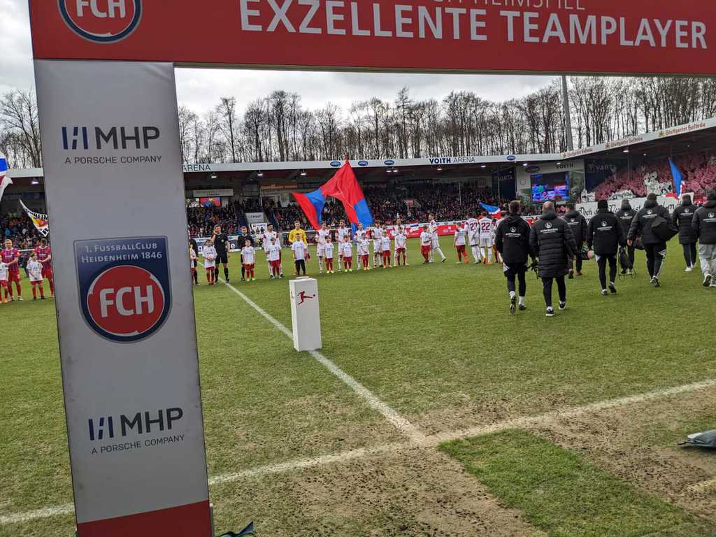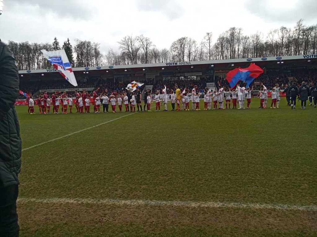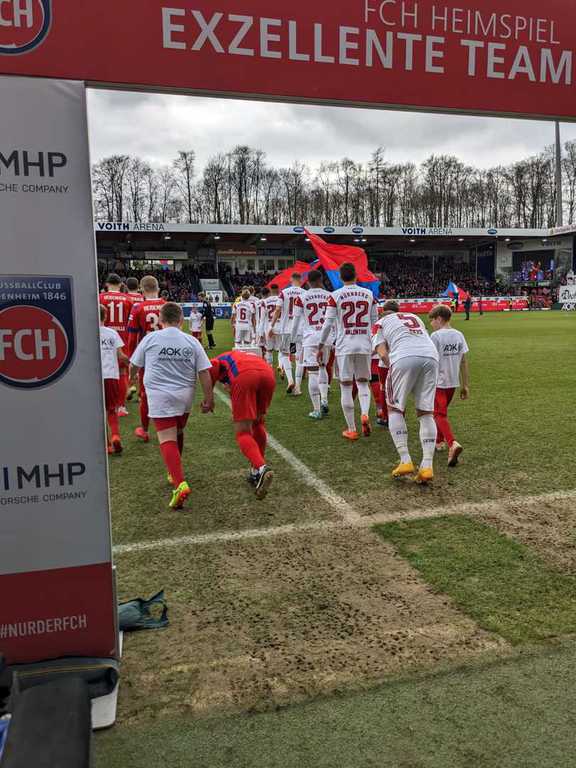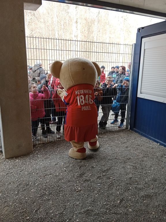 Eltern, sowie Fans und Vereinsverantwortlichen saßen, steuerte man die Voith-Arena an. Die Sportfreunde wurden von Paule, dem Maskottchen des FC Heidenheim, am Stadioneingang empfangen. Während sich