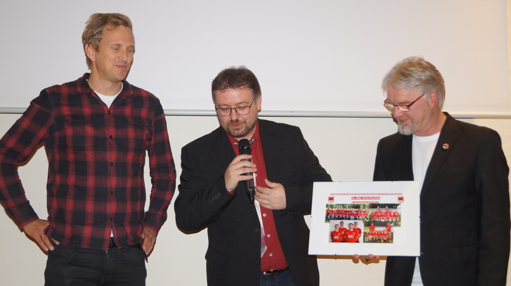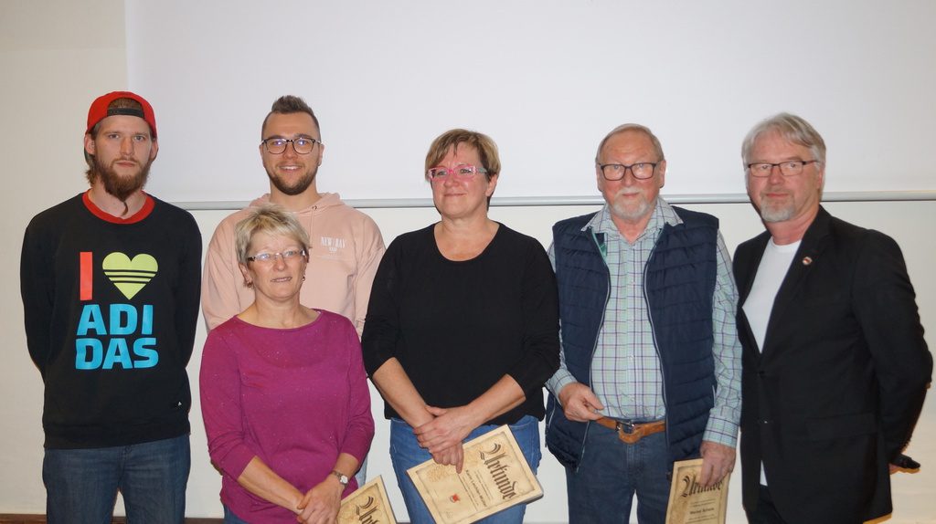 Beck sen., Adrian Cherlea, Andreas Kustelega, Eike Marx, Josef Plobner und Stefan Schmidt Mitglieder bei den Sportfreunden. Hierfür erhielten sie eine Urkunde und die Vereinsehrennadel in Silber. Auf