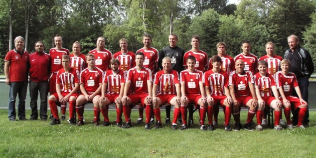 Sitzend von links: Patrick Müller, Danny Müller, Peter Beck, Johannes Müller, Karl Baumgärtner, Tobias Feck-Melzer, Mathias Arold, Thomas Hermann, Andreas Kustelega, Hannes Müller