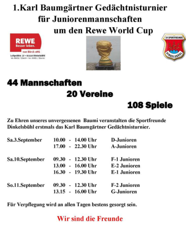 An den letzten beiden Wochenenden fand das 1. Karl-Baumgärtner-Gedächtnis-Turnier statt, der im April diesen Jahres viel zur früh verstorben ist.