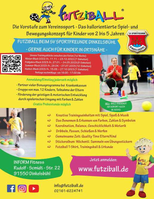 Neues Angebot für Kinder von 2 bis 5 Jahren in Zusammenarbeit mit "fUTZIBALL" und "Inform Fitness"
