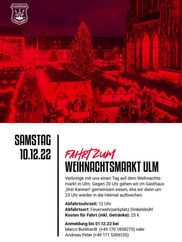 Samstag, 10. Dezember 2022, ab 12:00 Uhr Ausflug zum Ulmer Weihnachtsmarkt