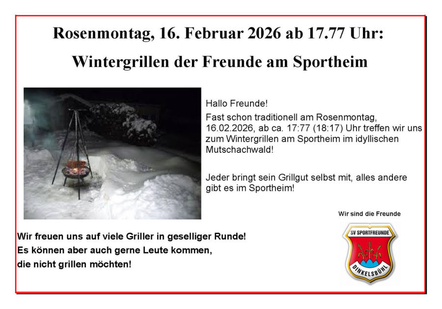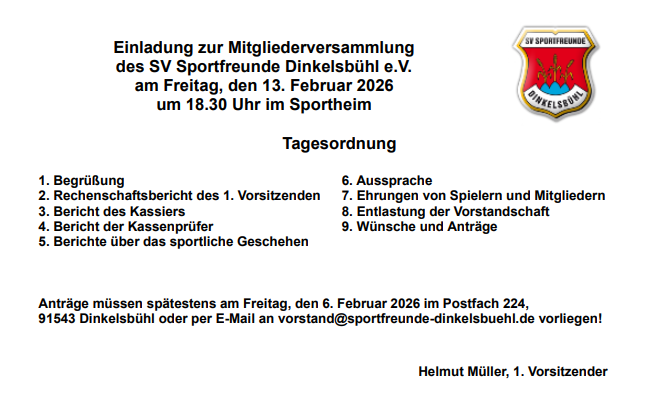 Freitag, 13. Februar 2026, 19.30 Uhr: Mitgliederversammlung im Sportheim